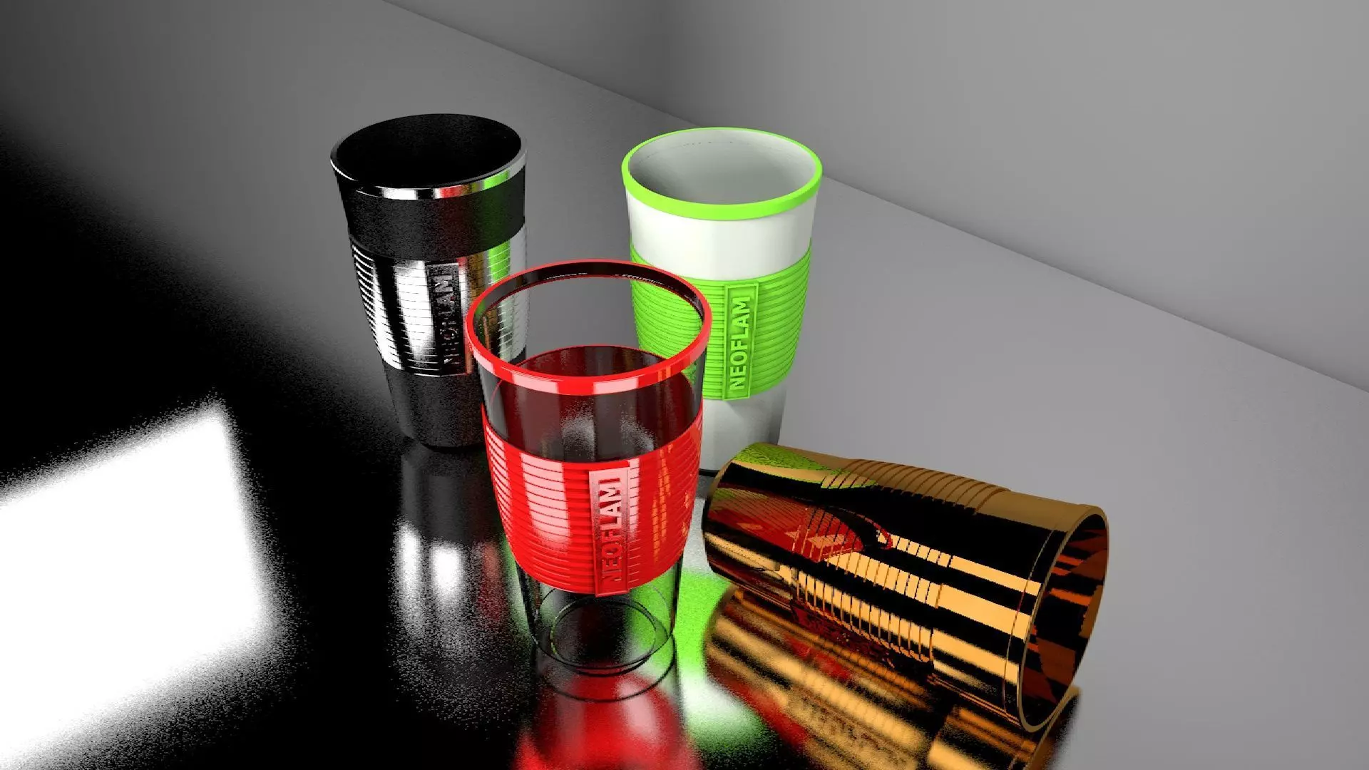 The model has material settings that define how surfaces look (color, shine, transparency, etc.).