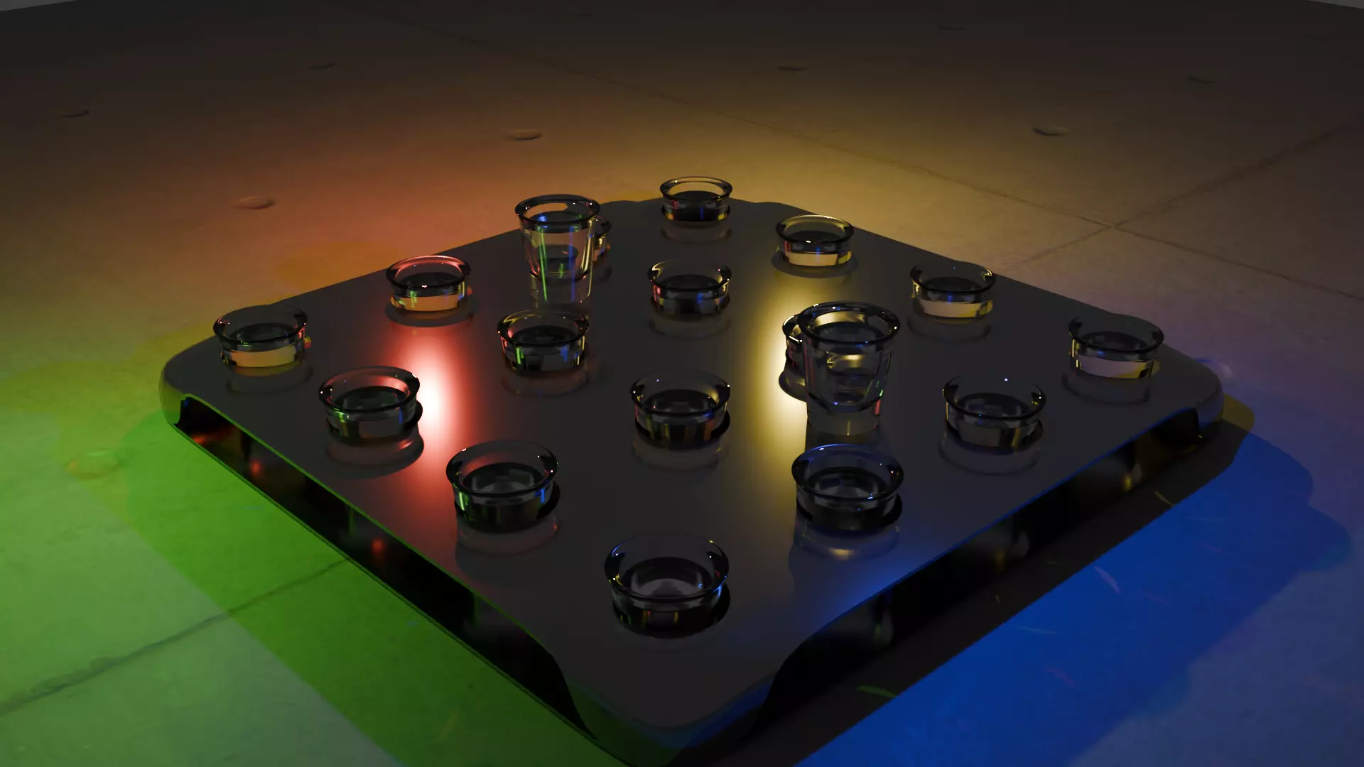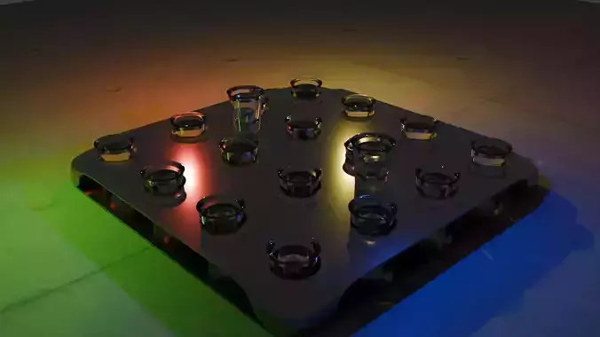 free 3D shots glass shots with metal tray.blend, fbx, stl, mtl, obj, x3d.