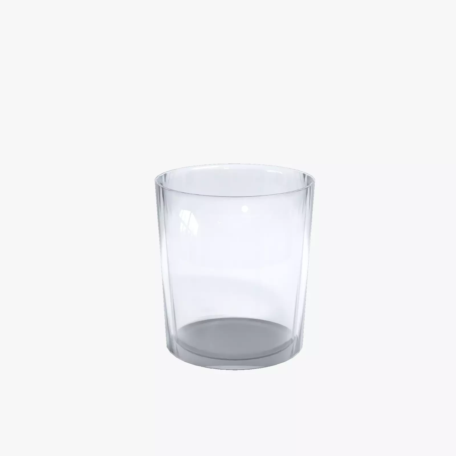 Simple glass cup, for kitchens and dining rooms, used for drinking fluids.