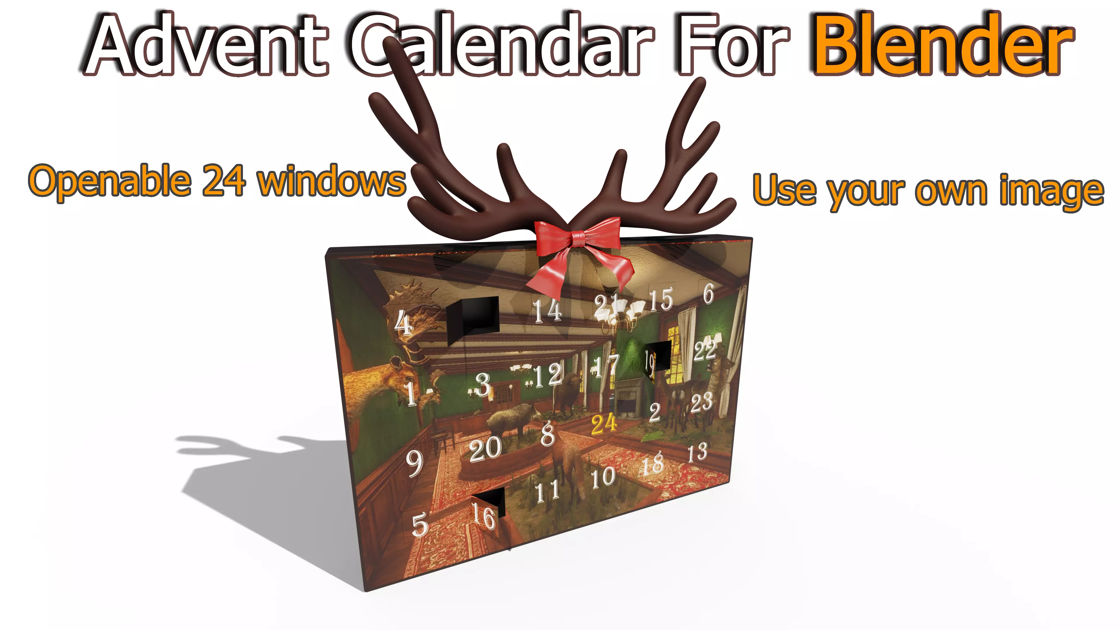 Hunter-themed Christmas Advent Calendar. Designed to be used in Blender.