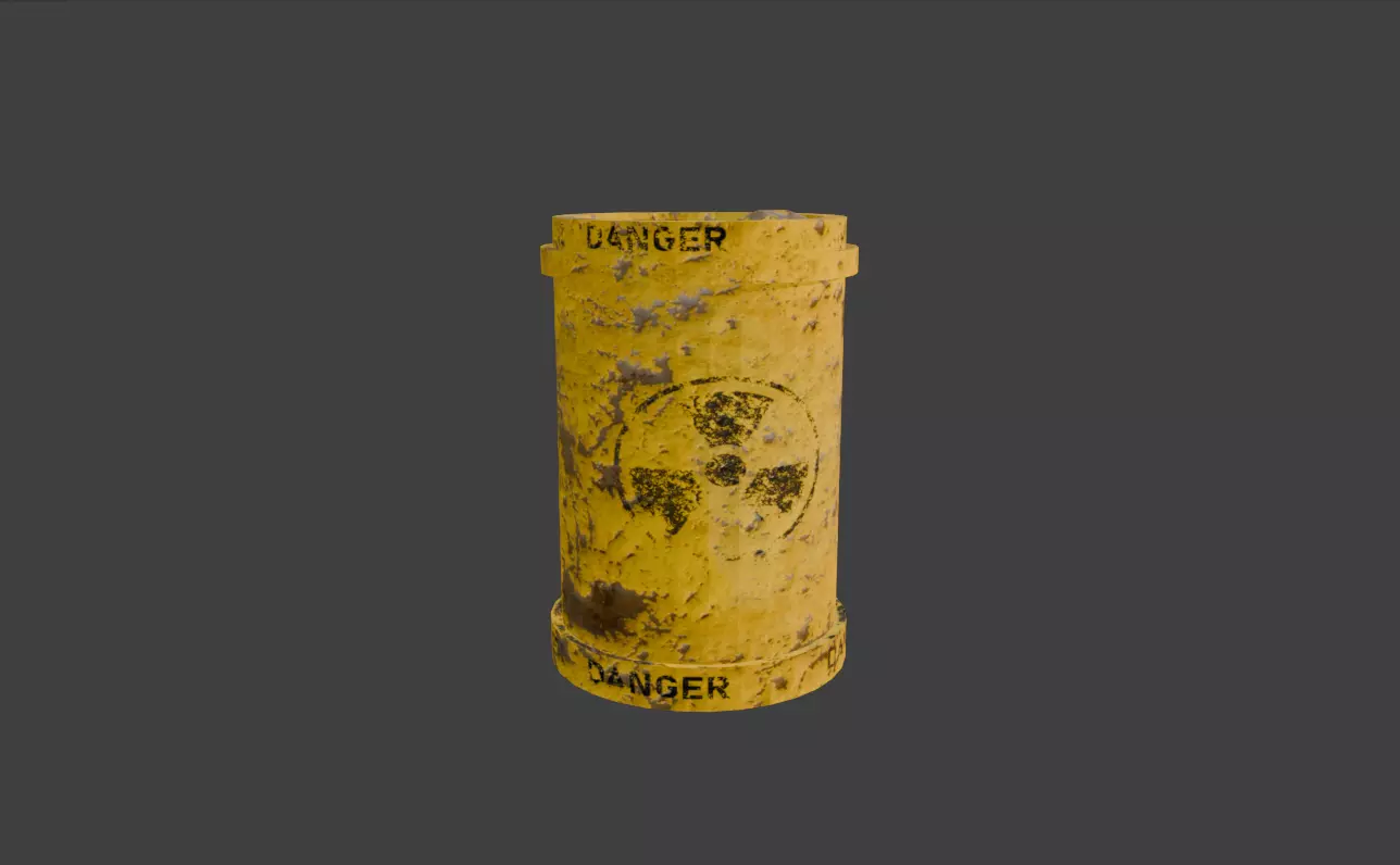 This 3D model represents a barrel of nuclear waste. The barrel has a cylindrical shape with reinforced edges at the top and bottom. Its surface is painted in a worn, dirty yellow color, symbolizing danger and caution. On the front side, there is a faded radiation hazard symbol, indicating that the contents are toxic and radioactive. Additionally, the word “DANGER” is written in black at both the top and bottom rims of the barrel. The texture is weathered and rusted, giving it an old and abandoned look, perfect for use in post-apocalyptic scenes, industrial environments, or video games that require hazardous objects.The model can be used in your 3D scenes or games, the textures are baked and ready to use in games.The file itself will not contain scenes from the render. I apologize for this and warn you in advance.Since I made the model for free use, I would ask you to write about its problems and shortcomings.