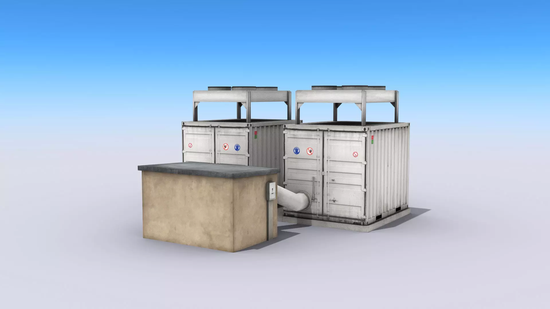 High-quality low-poly 3D model of Big Industrial Cooling Units.