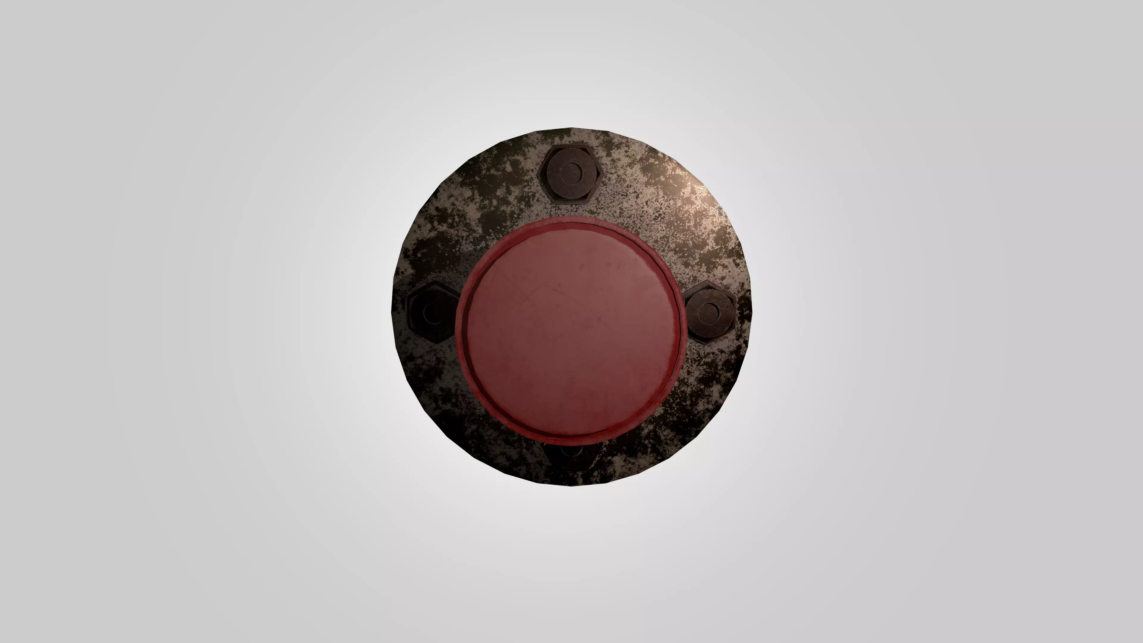 A highly detailed industrial emergency button asset designed for professional use in games, real-time applications, and 3D renders. This weathered control panel button features authentic industrial design elements including a large circular activation surface, mounting bolts, and a realistic aged metal finish.