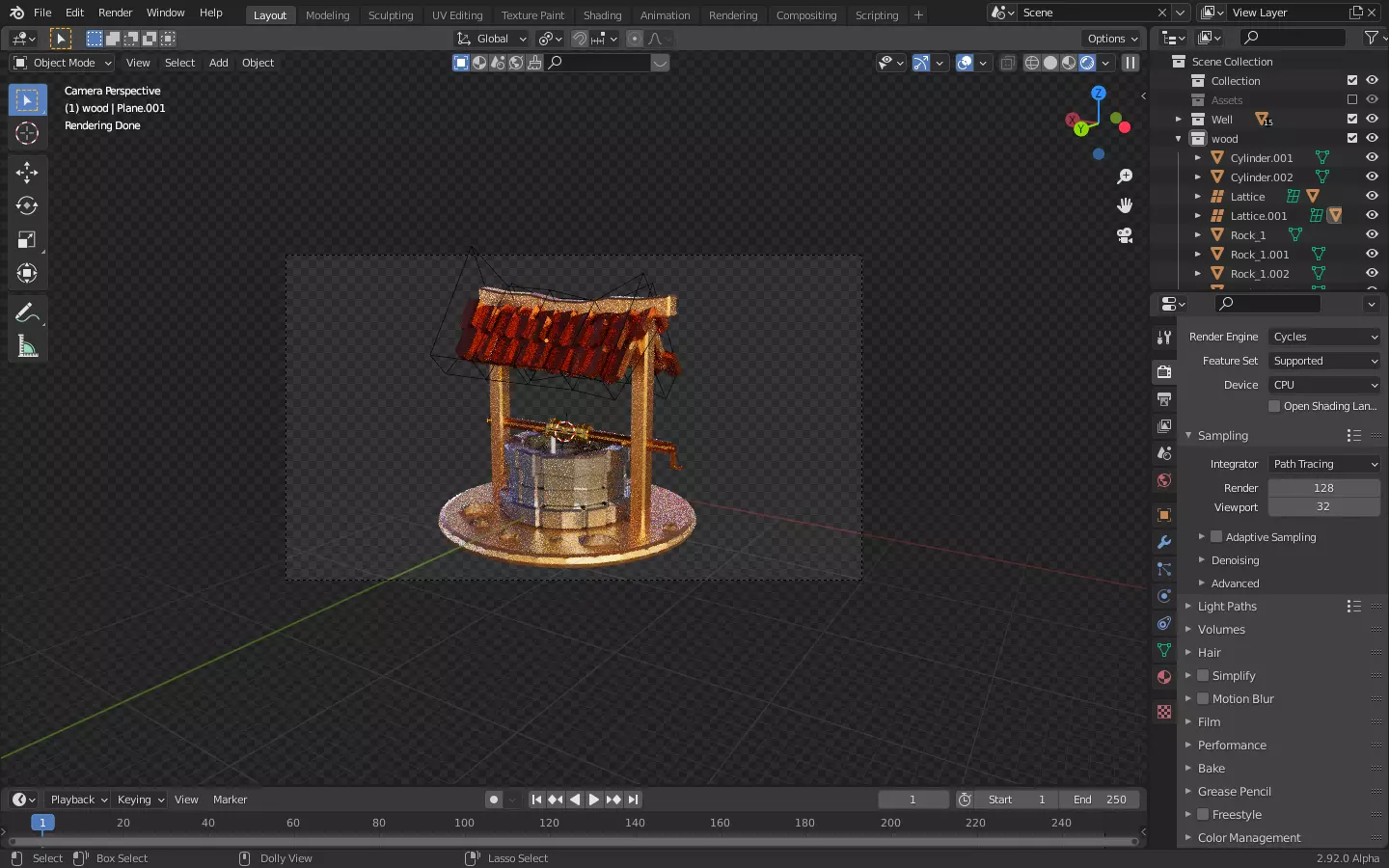 The model has material settings that define how surfaces look (color, shine, transparency, etc.).