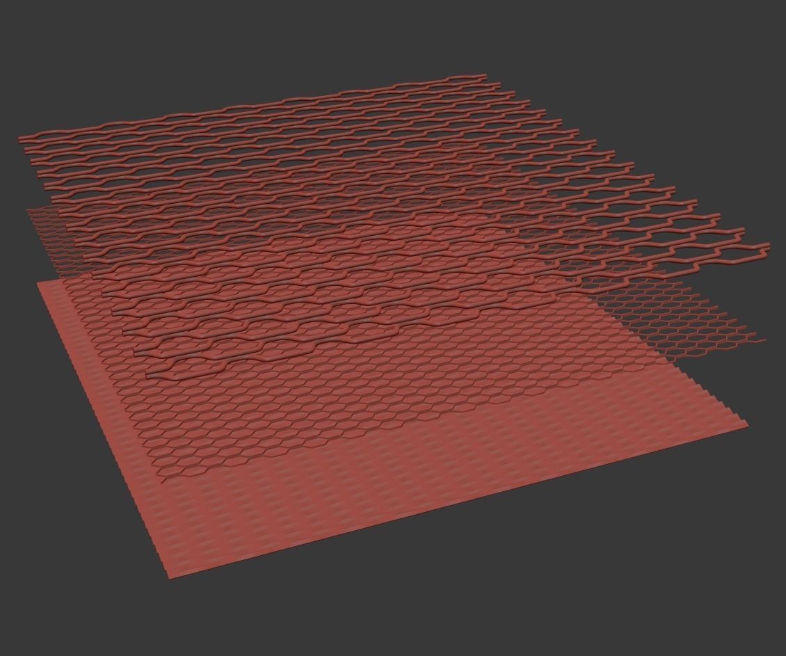 3 distinct mesh grill models. Perfectly tileable, 1x1 m in size. File units are in cm. If you need to tile grills, just select model, duplicate it and offset it in desired axis by 100 system units. do it for the other axis as well if needed. Afterwards you can attach all copies into single object.
