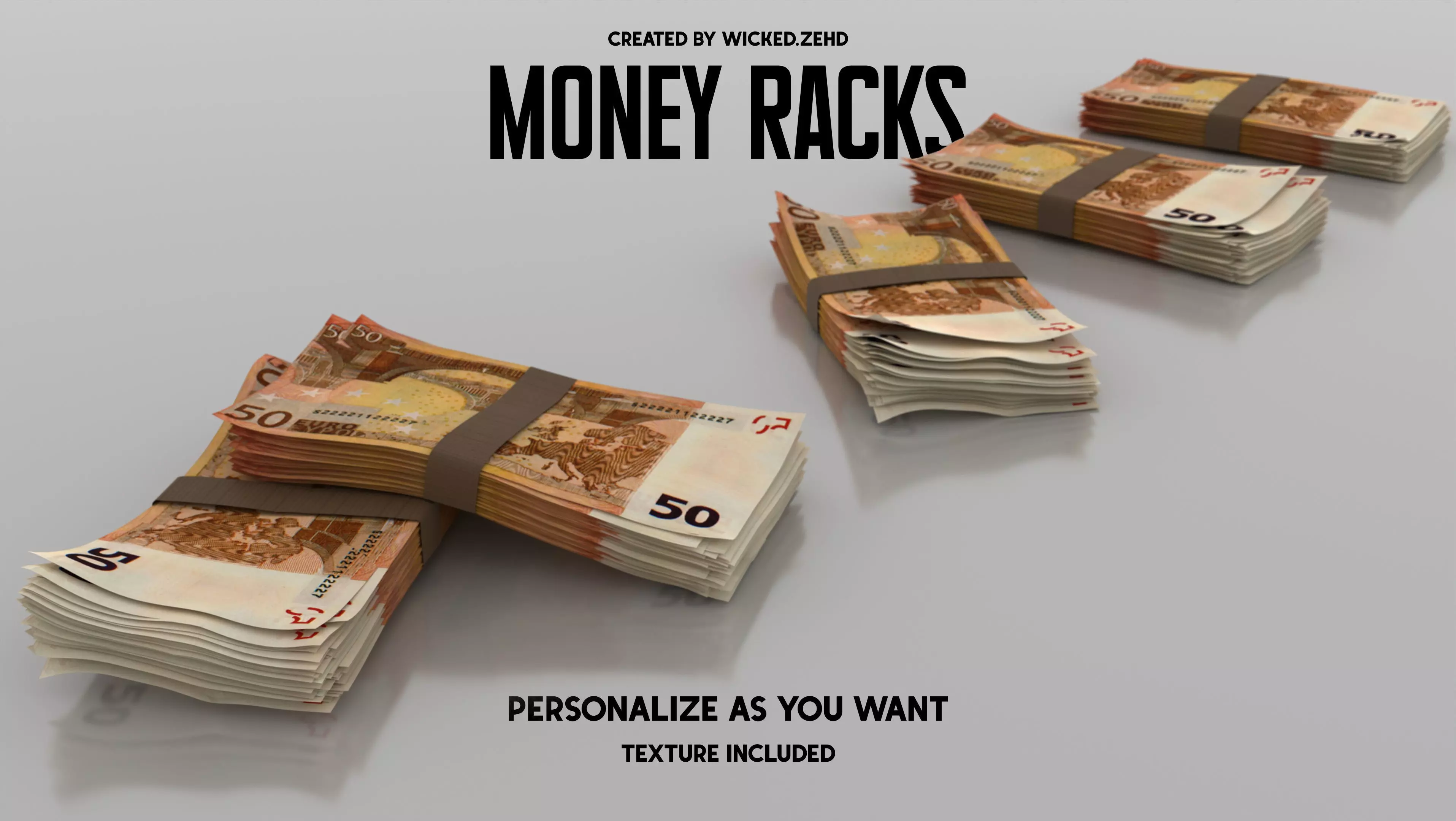 if the textures don't load, select a banknote, apply the texture and make sure everything is good, then select ONLY the newly textured banknote and the other remaining non-textured banknotes with (shift+click), once selected all of them press (CTRL+ L) and click on MATERIALS, so the texture will apply in all selected models at once.