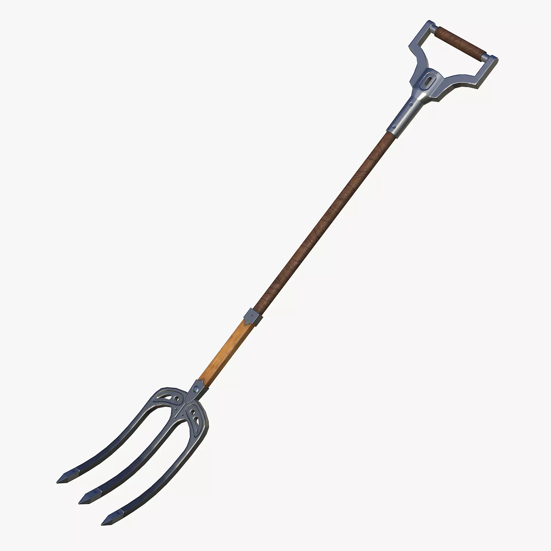 A textured pitchfork using a stellar style, perfect for use in room decoration or even used as a weapon.