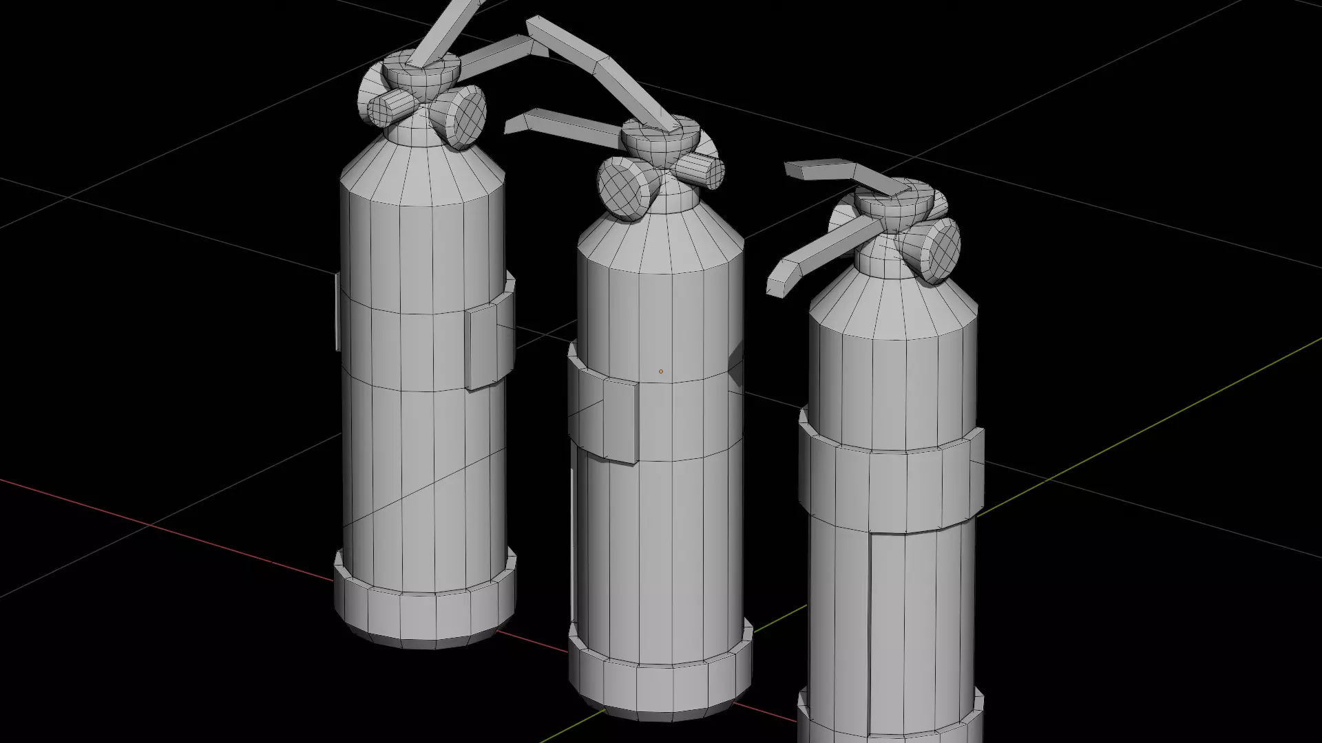 A set of three stylized fire extinguisher props. Designed with a clean, low-poly silhouette perfect for urban or industrial game environments, and technically optimized for 3D printing. The thick levers and nozzles ensure a successful print without fragile break-points.