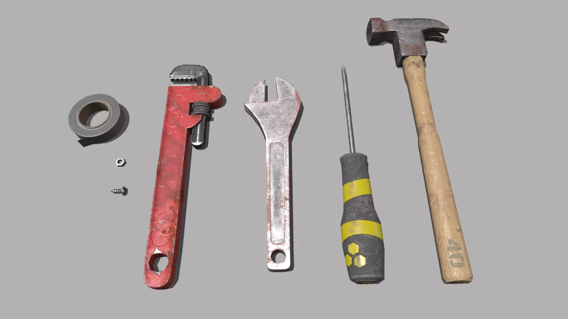 7x meshes: Hammer, Wrench, Spanner, Screwdriver, Tape, Screw, Nut