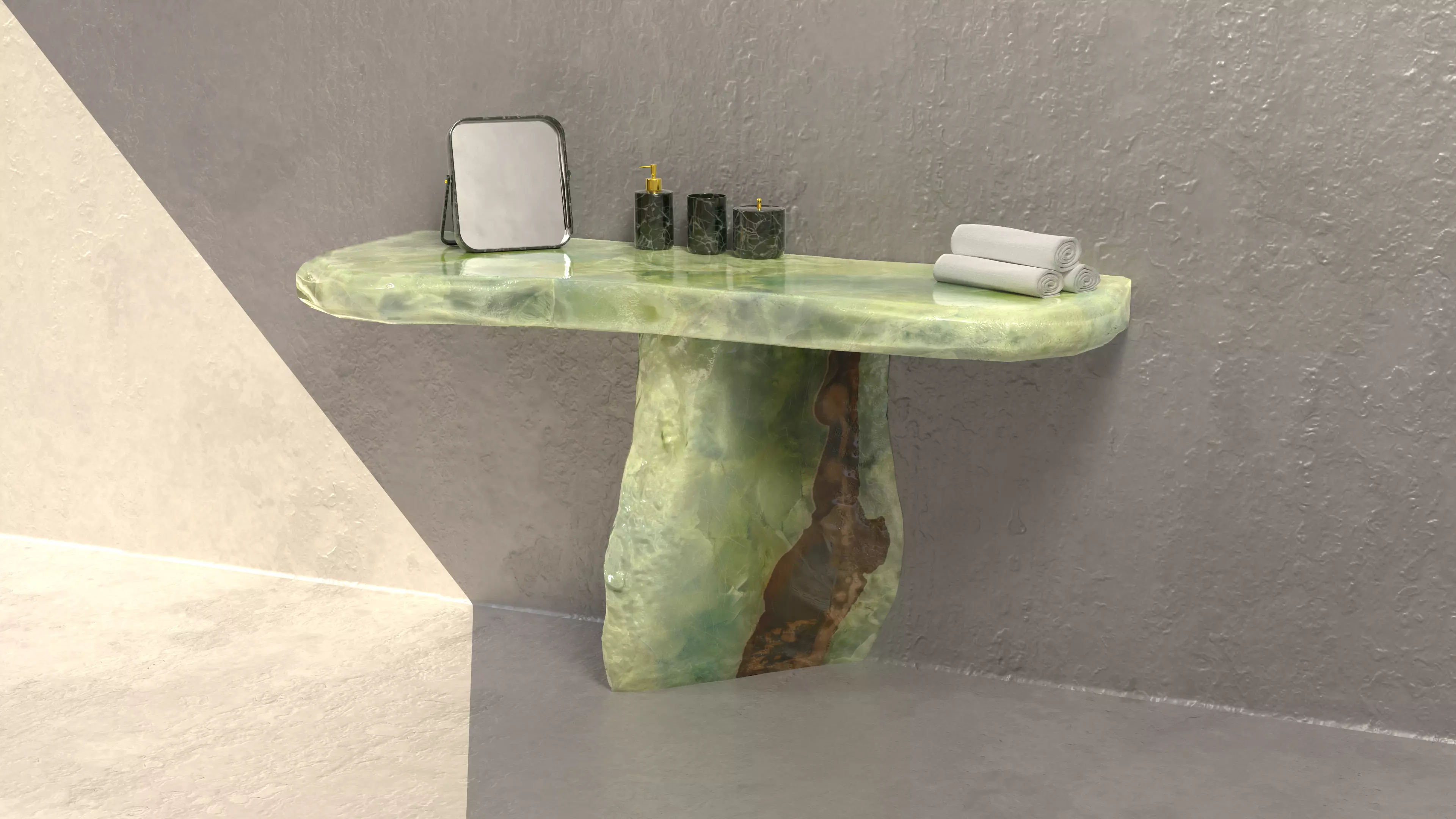 The Green Marble Vanity Unit is a low-poly, game-ready 3D asset designed for realistic environments, featuring intricate marble textures with optimized geometry for seamless performance in various gaming engines. This vanity unit adds a touch of luxury and sophistication to any virtual bathroom or interior space, enhancing visual appeal without compromising on efficiency.
