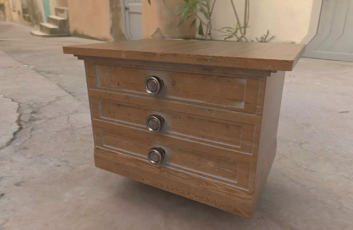 Cabinet bedside table with three drawers Free low-poly 3D model
