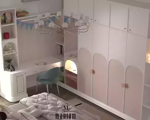 This versatile 3D model is perfect for interior designers and 3D artists looking to create compelling and photorealistic visualizations of a high-end kids' bedroom.