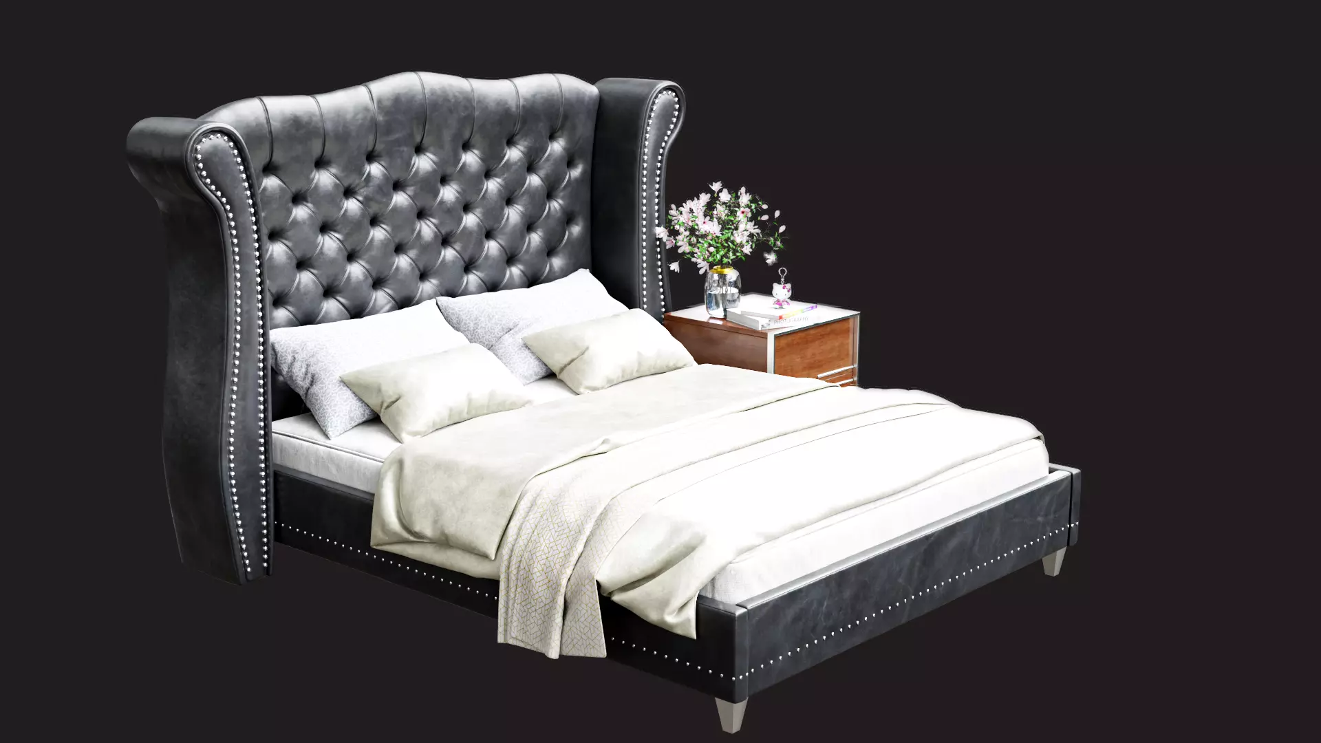 Chesterfield bed with a detailed flower , a hello kitty figure and a cabinet. High level of details , low polly subdivision ready.