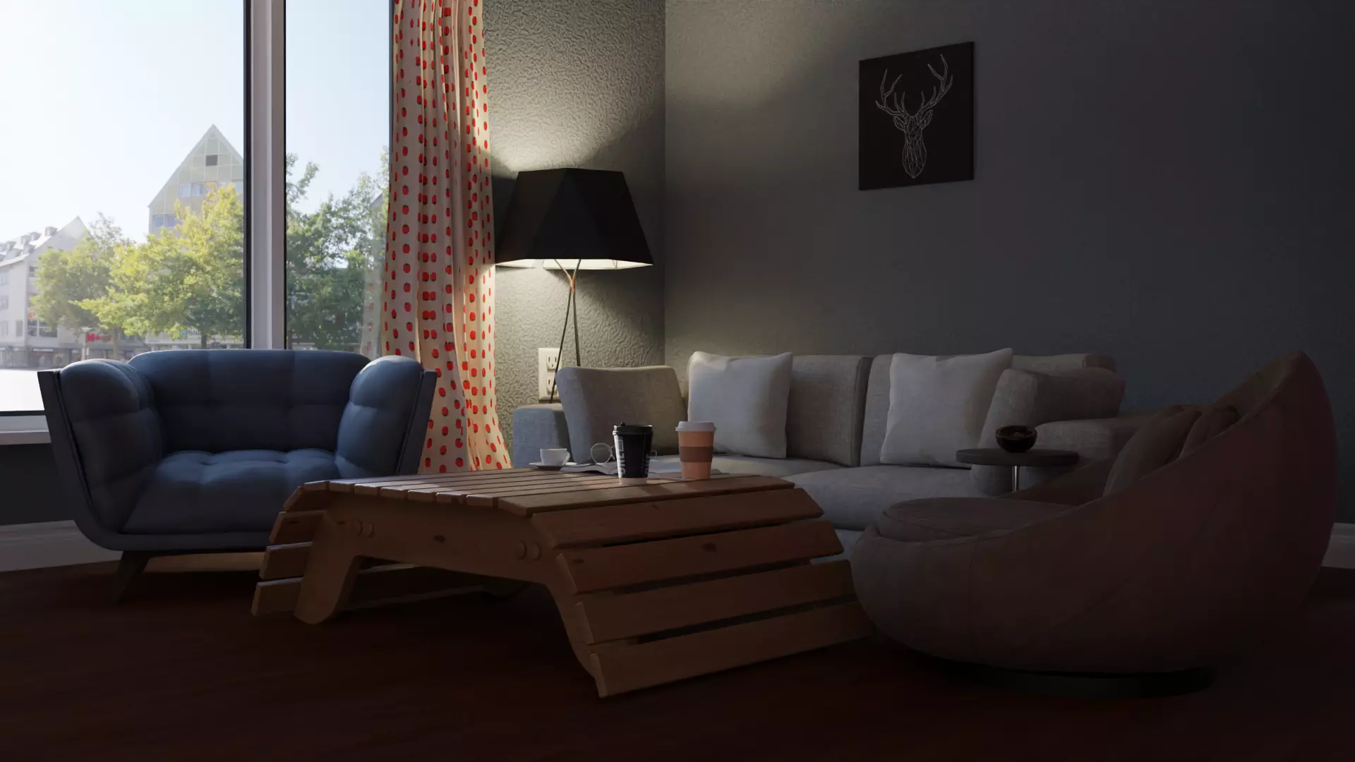 The model has material settings that define how surfaces look (color, shine, transparency, etc.).