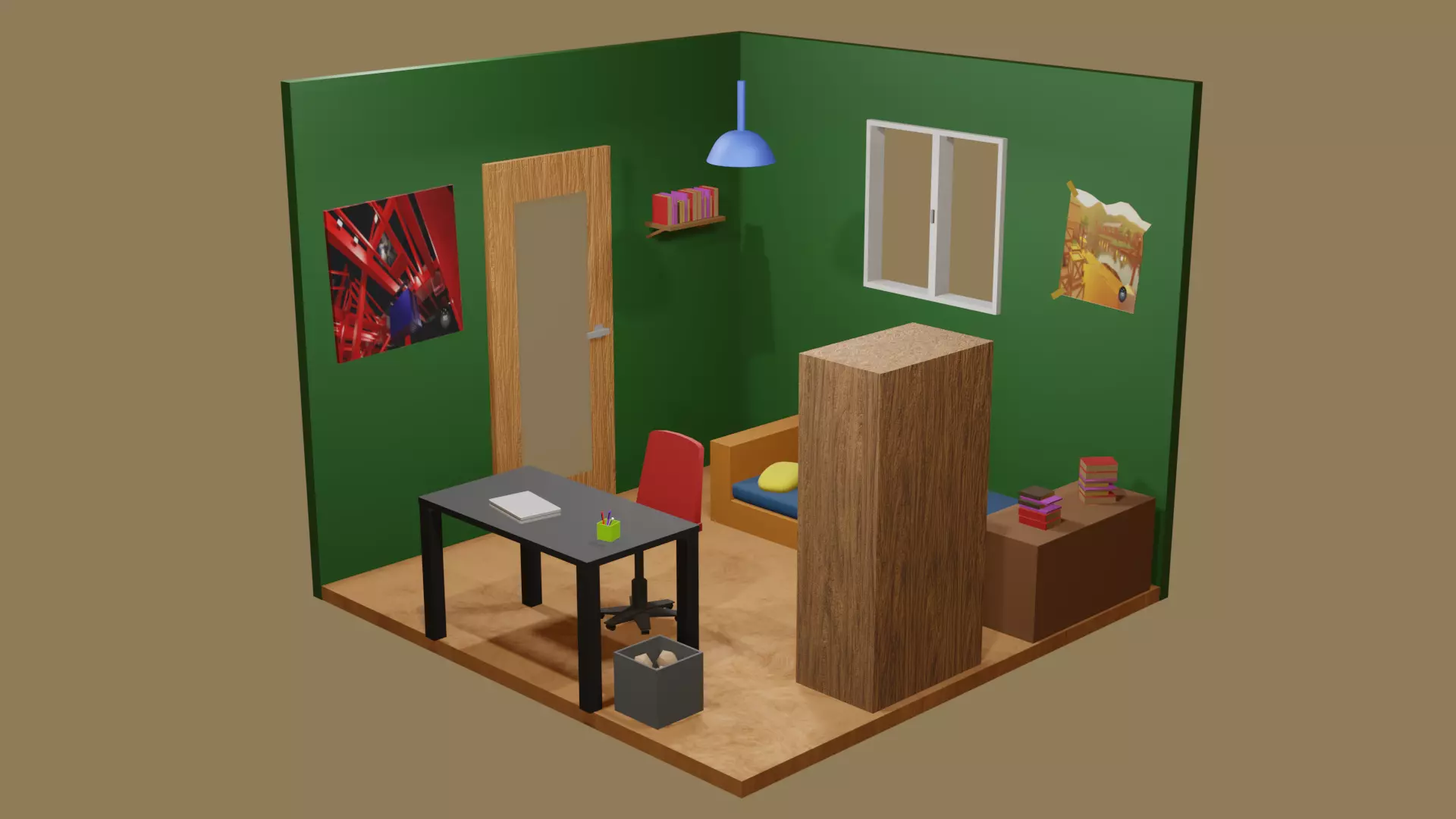 The model has material settings that define how surfaces look (color, shine, transparency, etc.).