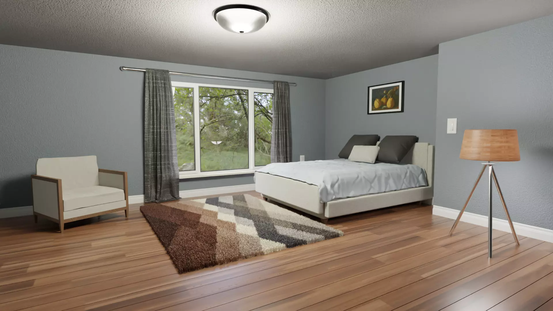The model has material settings that define how surfaces look (color, shine, transparency, etc.).