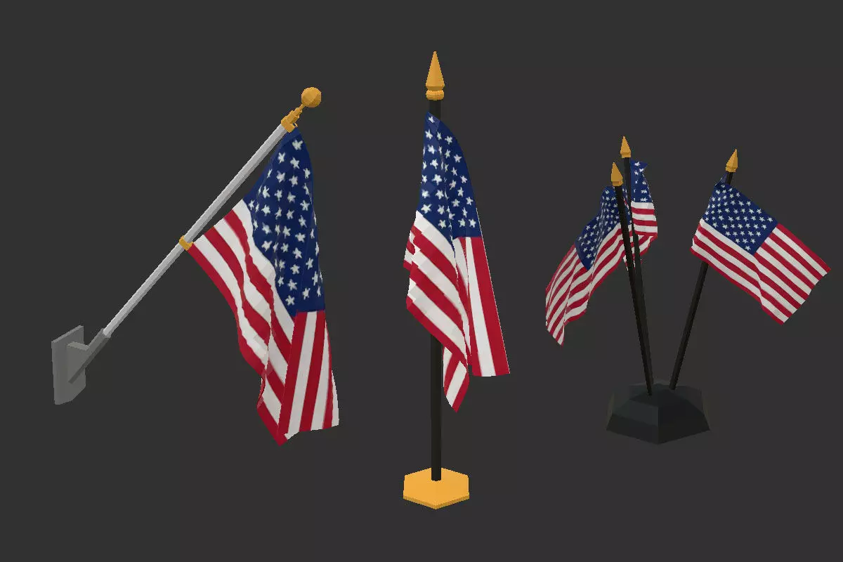 Enhance your scenes with this Low Poly American Flag Set, perfect for patriotic environments, government buildings, educational settings, office, school or themed games.Each model is optimized for performance, making it suitable for PC, VR, and mobile games.With clean geometry and minimal detail, this set is designed for stylized environments and is compatible with Unity and Unreal Engine.