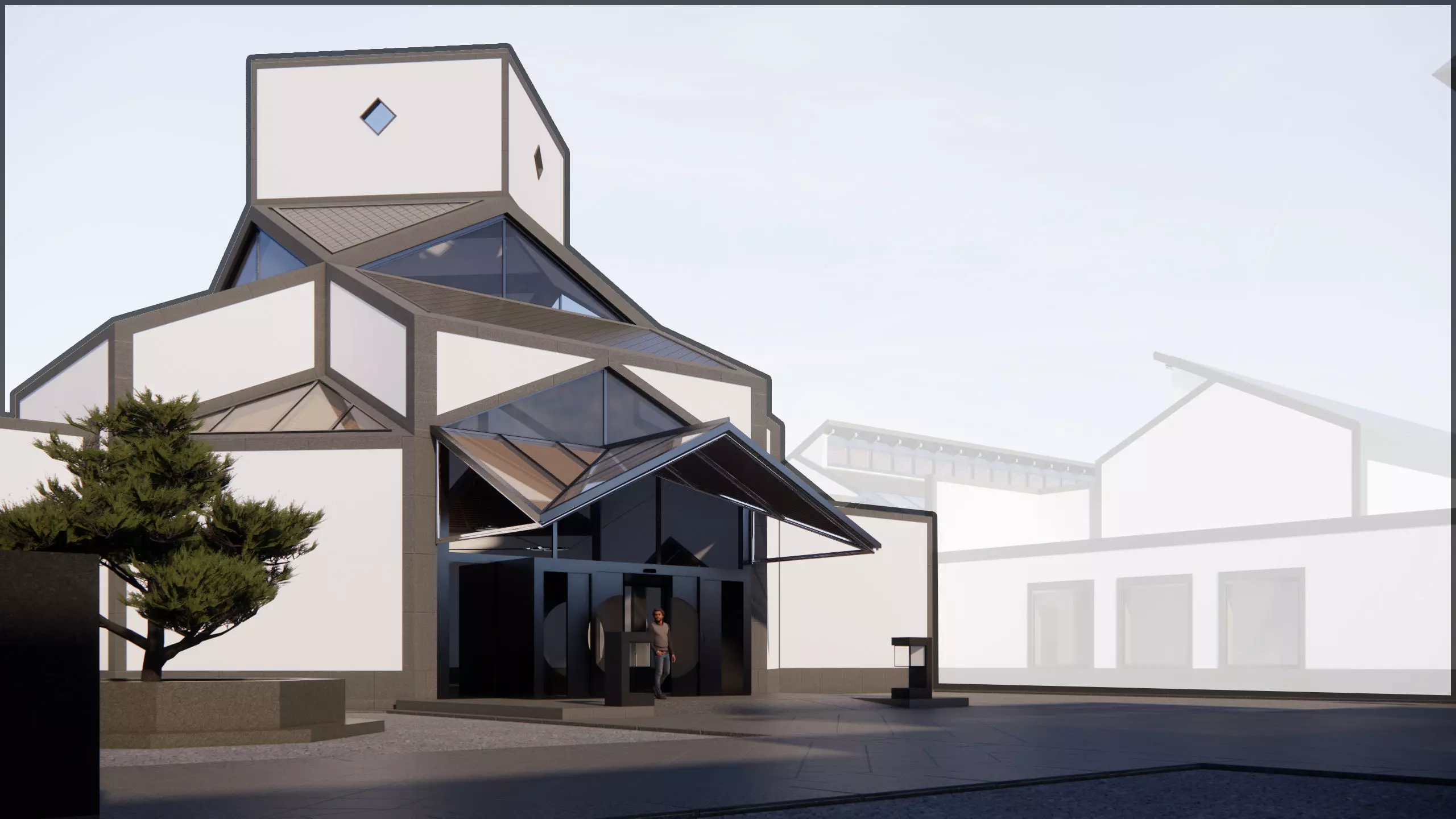 Recreation of the iconic entrance hall for the Suzhou Museum, in China, completed in 2006 by the Great Ieoh Ming Pei.Very elegant mix of contemporary and traditional architectural language, also very effective in the precision of its design.
