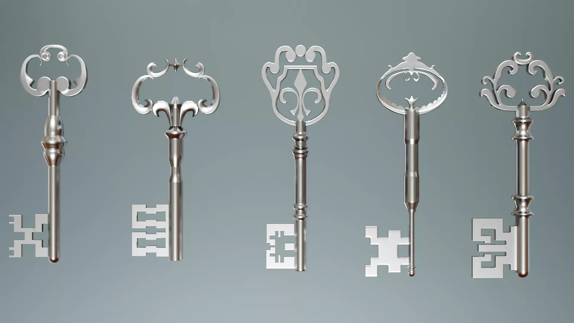 A collection of 3D model Keys.