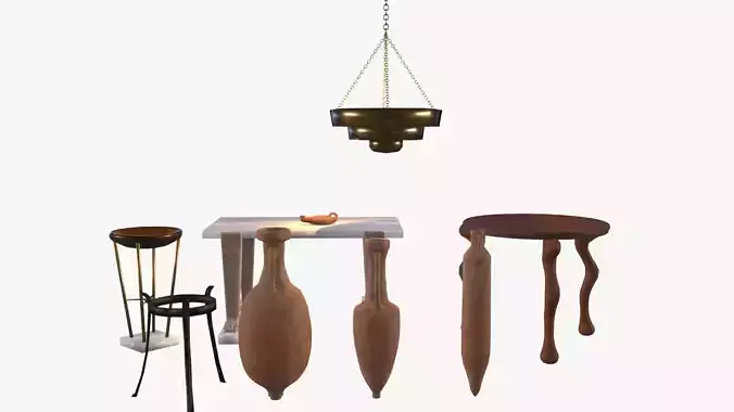 Consists of three (3) different amphora; three sources of light (3) and two (2) tables.