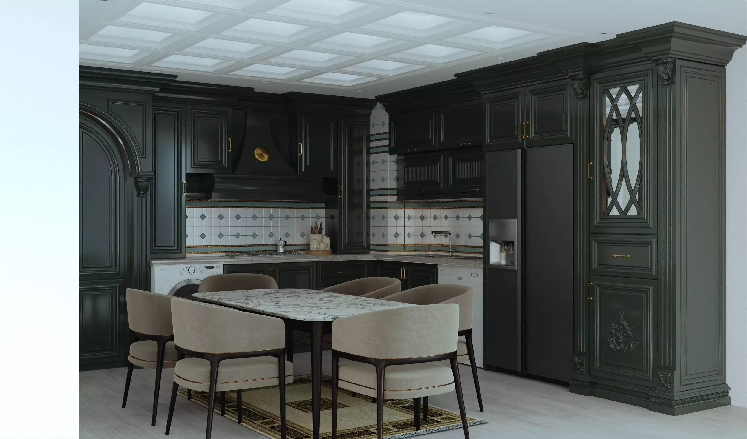Step into a world of sophistication with our meticulously designed 3D model of a classic cabinet. This exquisite piece features ornate columns and Roman column heads, seamlessly integrated with a distinctive hood that elevates its beauty twofold. The captivating green coloring, accentuated by small golden details, adds a touch of charm and opulence to this timeless cabinet.