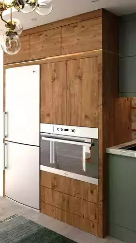 Wood Texture & Green Color Scheme: The harmonious blend of brown wood textures and green colors adds a touch of sophistication.3DMax Design: Meticulously designed in 3DMax, ensuring a realistic and visually appealing representation.V-Ray Rendering: Expertly rendered using the V-Ray plugin, optimizing light and material for a stunning finish.Transform your living space with this modern kitchen cabinet, a testament to the seamless integration of style and functionality. Elevate your home with this contemporary masterpiece, perfectly suited for modern architectural expressions and interior design aesthetics.