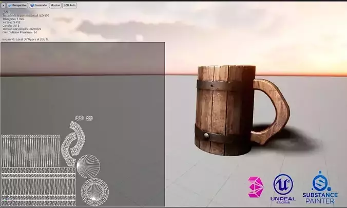 wooden jug Medieval UE4ready for unreal (Medieval Serie).3DS, .FBX, .OBJ, READY It Includes:NORMAL_MAP + DIFFUCE_MAP + RGB_MAPThis model is part of a series called medieval, which contains several medieval objects for decoration of your project unreal engine 4, if you need more information you can contact me and I can work a model according to your specifications thanks for your attention.