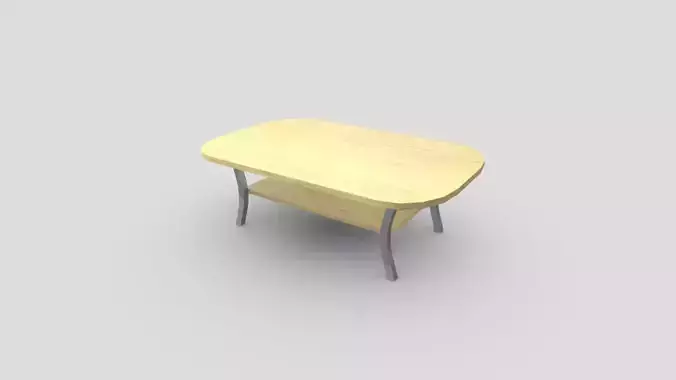 A modern, rectangular coffee table with gently curved metal legs and a light wooden finish. It features a lower shelf for extra storage, combining functionality with a minimalist design.