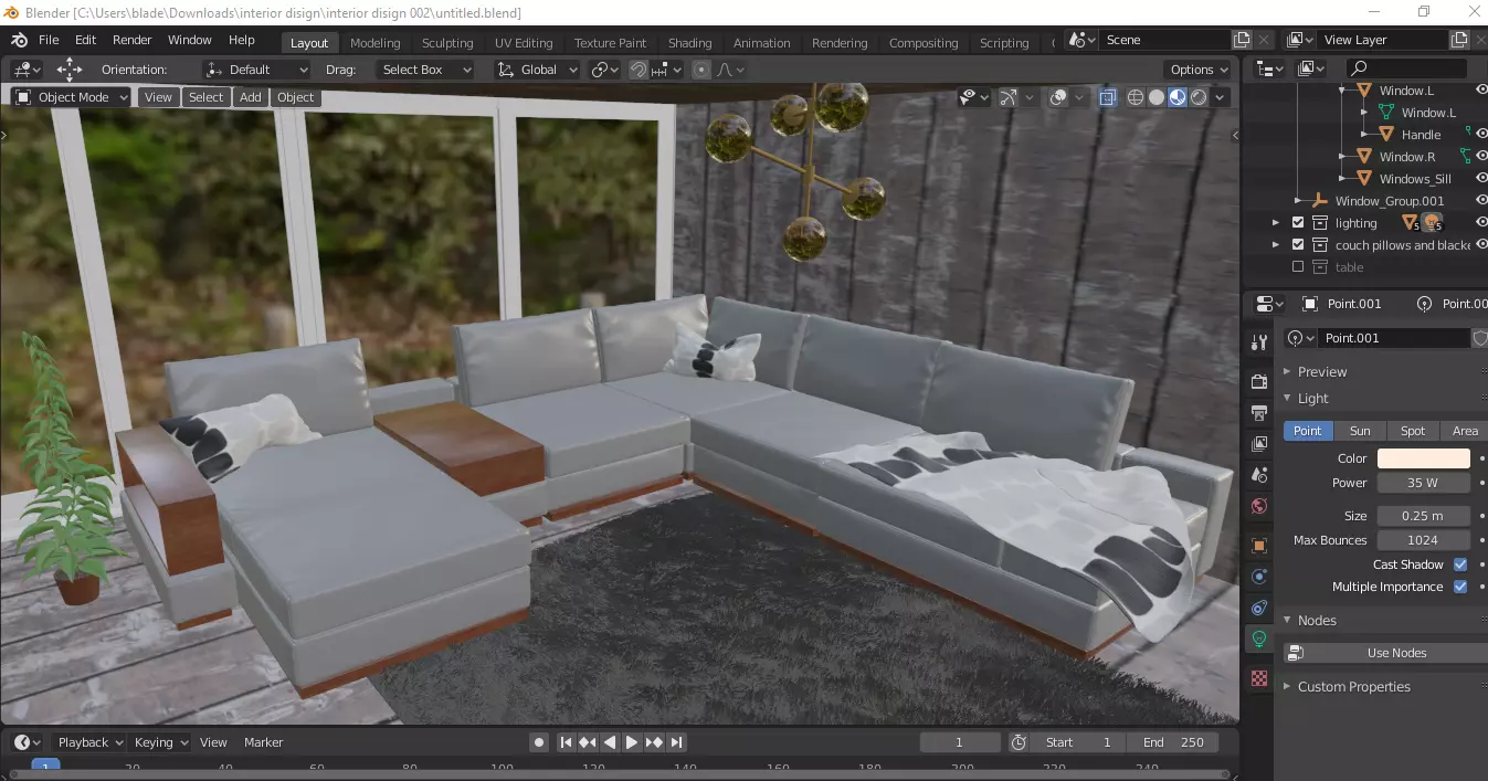 The model has material settings that define how surfaces look (color, shine, transparency, etc.).