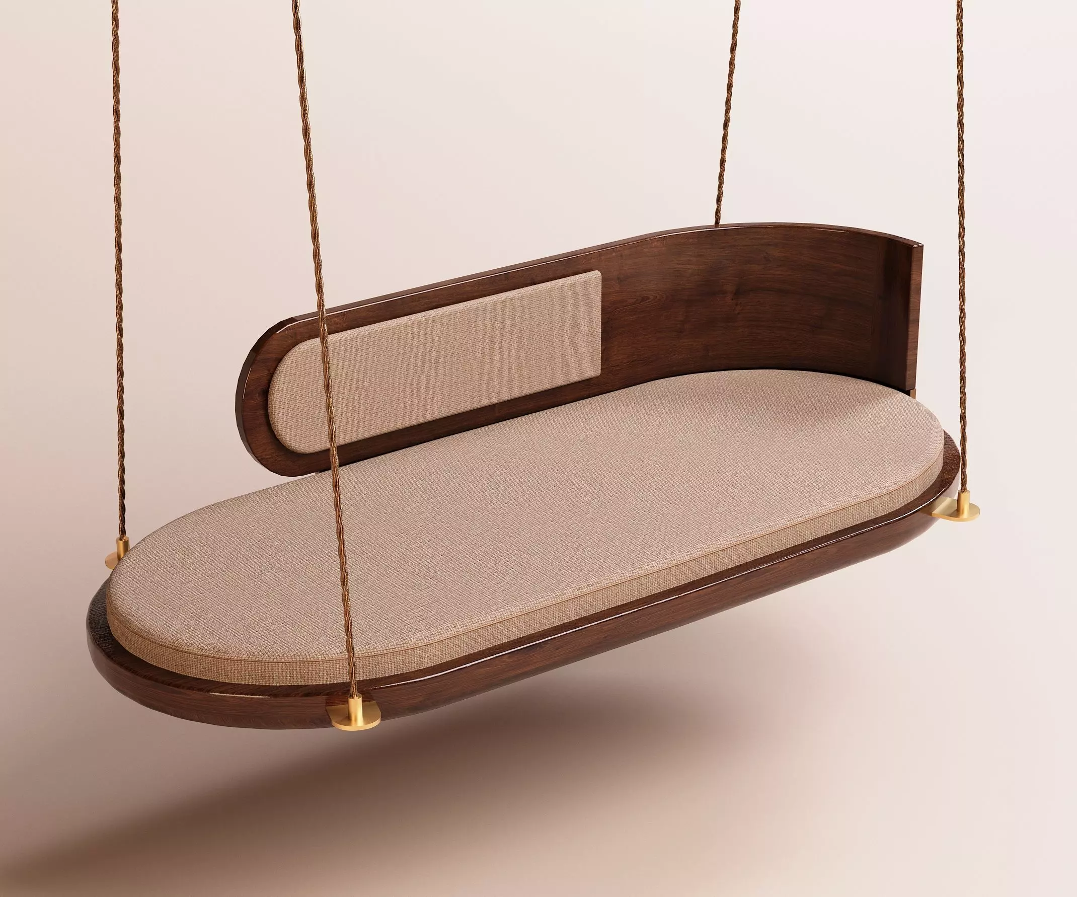 This elegant wooden hanging swing sofa / daybed is a premium 3D furniture model designed for luxury interiors, resorts, villas, hospitality spaces, and high-end architectural visualizations.Featuring a smooth curved wooden frame, soft upholstered seating, and suspended rope supports, this model brings a perfect blend of modern design and natural aesthetics.
