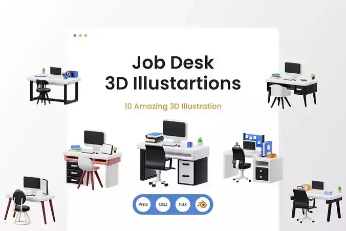 10 ready made 3D Job Desk Illustrations file objects for Websites, Mobile Apps and more. Enhance your designs with 3D Assets.