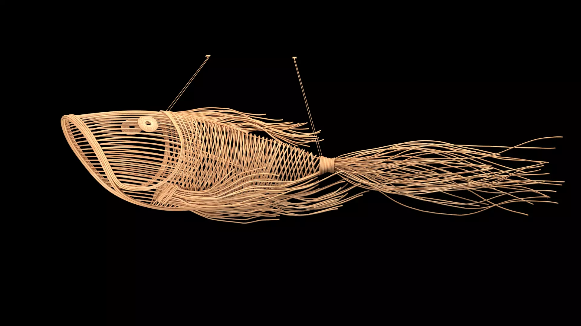 High-quality 3D bamboo fish decor model meticulously designed to replicate traditional handcrafted bamboo weaving. Perfect for interior decoration, cafés, restaurants, homestays, gardens, or any 3D architectural and design projects that require a natural, rustic touch.