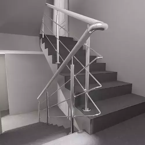 staircase with stainless steel railing