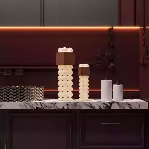 Luxury sculptural floor lamp 3D model with marble sphere base and stone shade, ideal for high-end interior visualization.