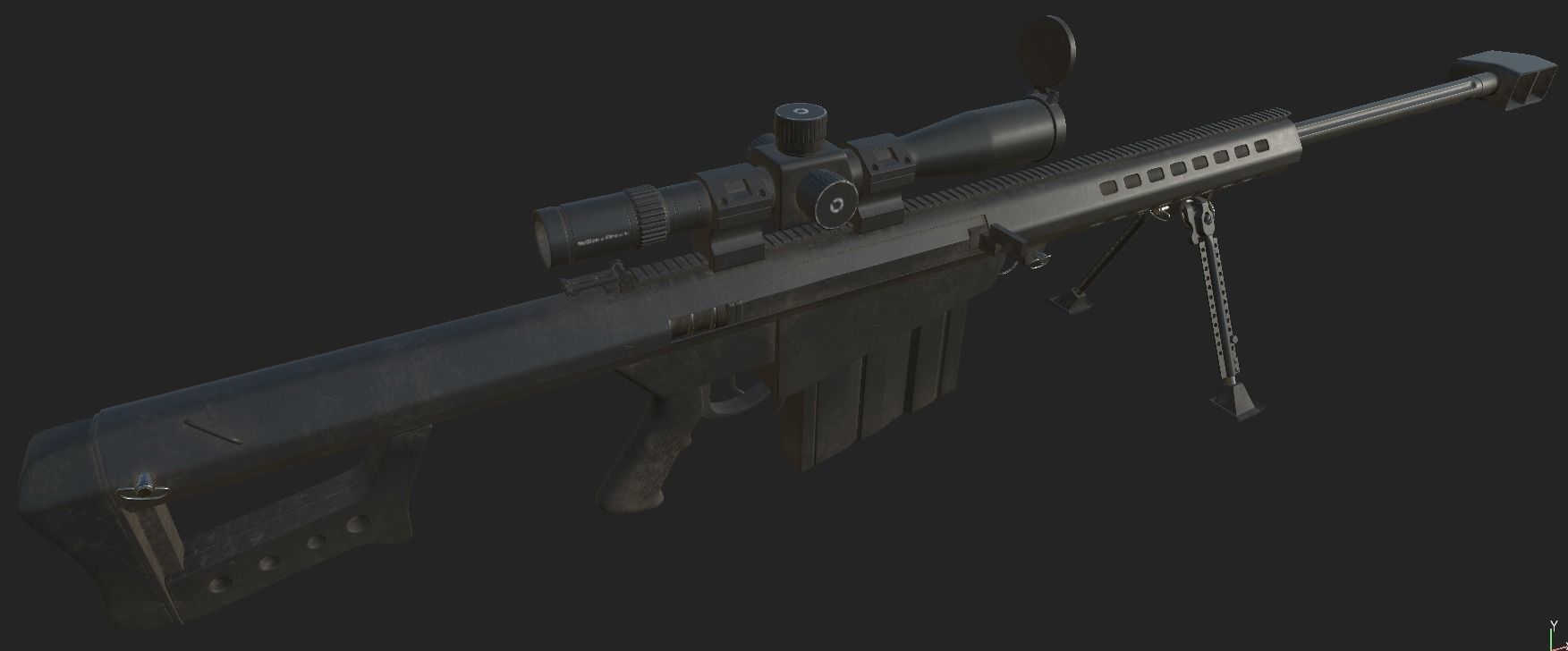 Barrett Firearms Manufacturing was founded by Ronnie Barrett for the sole purpose of building semi-automatic rifles chambered for the powerful 12.7×99mm NATO (.50 BMG) ammunition, originally developed for and used in M2 Browning machine guns. The weapon was first sold to the Swedish Army in 1989. In 1990, the United States armed forces purchased the M82A1 during operations Desert Shield and Desert Storm in Kuwait and Iraq. About 125 rifles were initially bought by the United States Marine Corps, and orders from the Army and Air Force soon followed. The M82A1 is known by the US military as the SASR—Special Applications Scoped Rifle,[4] and it was and still is used as an anti-materiel rifle and explosive ordnance disposal tool.High-poly4096x4096 textures (2 textures: base, second)