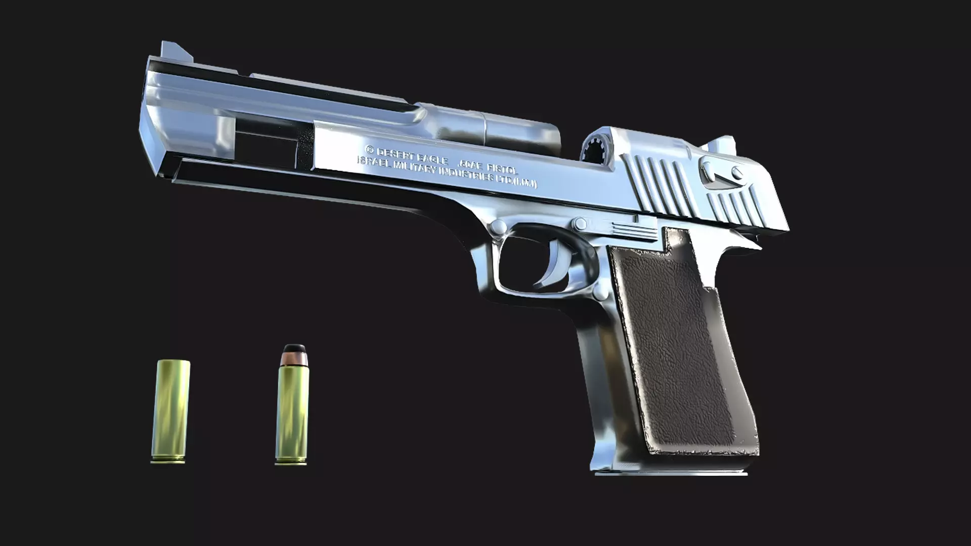 1 fbx file and 1 obj file containing a textured desert eagle model with an optimized topology for integration in the video game