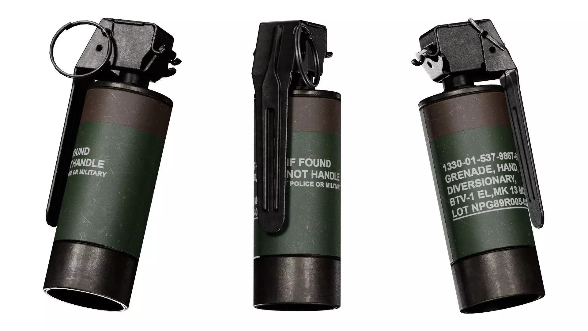 Game-Ready 3D Model inspired by the NICO BTV-1 Flash Bang Grenade used in the United States by police and military units.