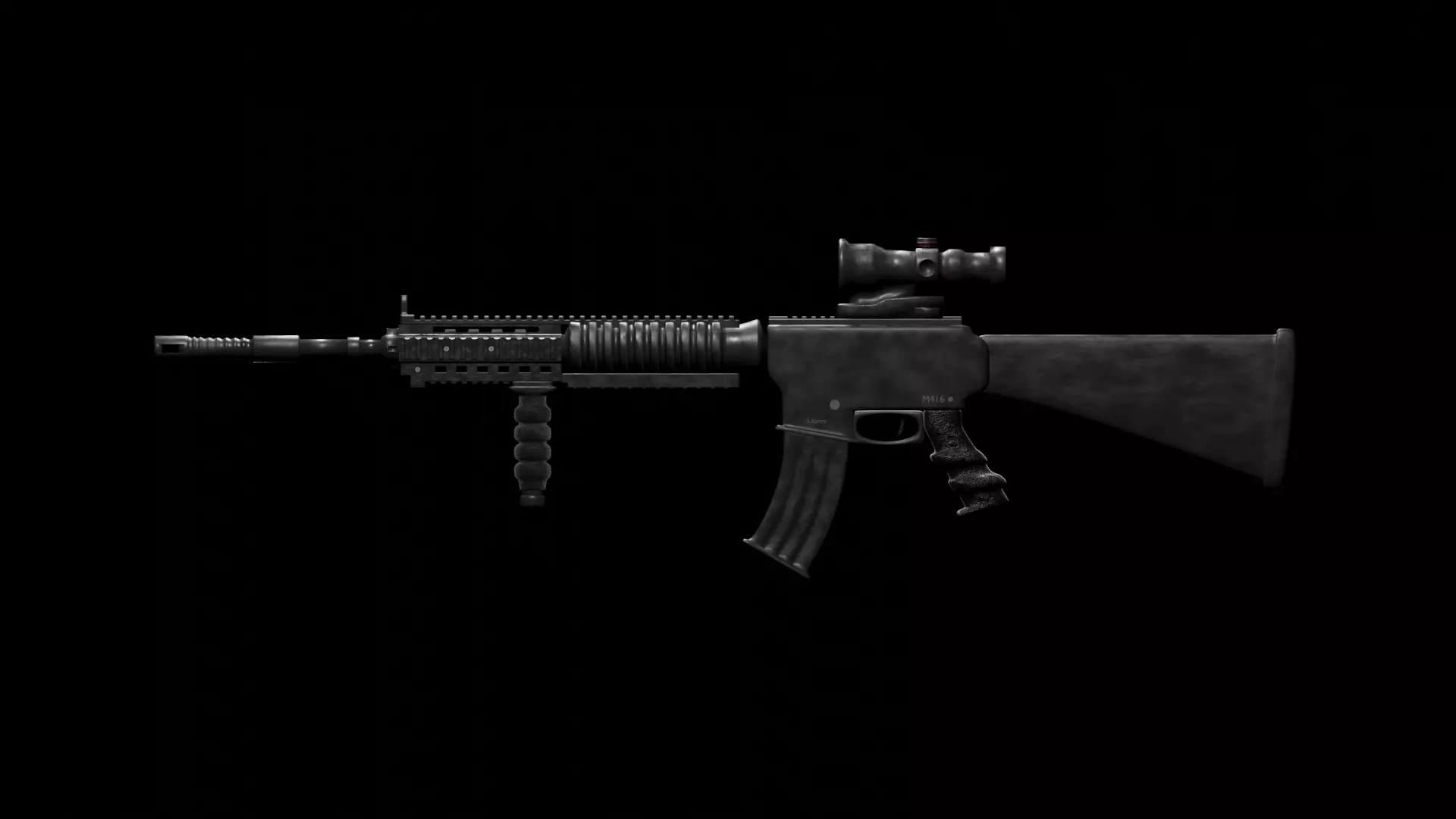 Verts - 30,394Faces - 29,742Tris - 61,497Textures:Color - M416 Base COL TEXTHeight - M416 Height TEXT(Non Seamless)Roughness - M416 Rougness TEXT(Non Seamless)Hand Grip Height - Hand Grip Height(Non Seamless)Hand Grip Crease - Hand Grip Crease(Non Seamless)Other Texture like Line and Circle are used for the scope lines and screw through UV Mapping UV Mapps Text:Connect the Circle Texture with the Vector of the following UVs-MiddlePart(UVMap.001)Second Front part(Screw Map)Second Front part(Screw Map2)Connect the Line Textue with the Vector of the following UVs-Scope(UVMap.001)