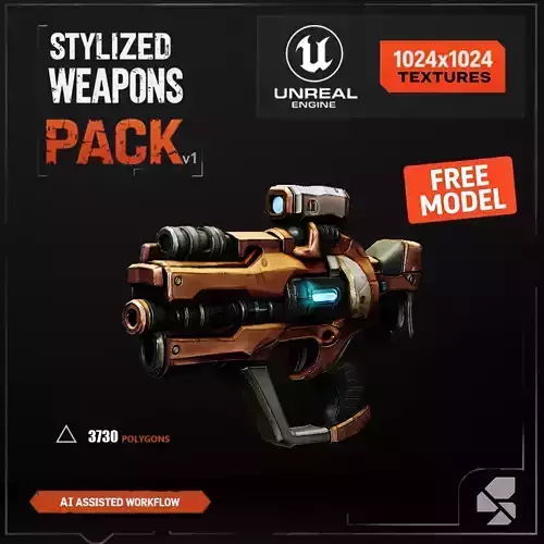Stylized Weapons Pack v1 - Pistol - UE5 - FREE Sample Free low-poly 3D model