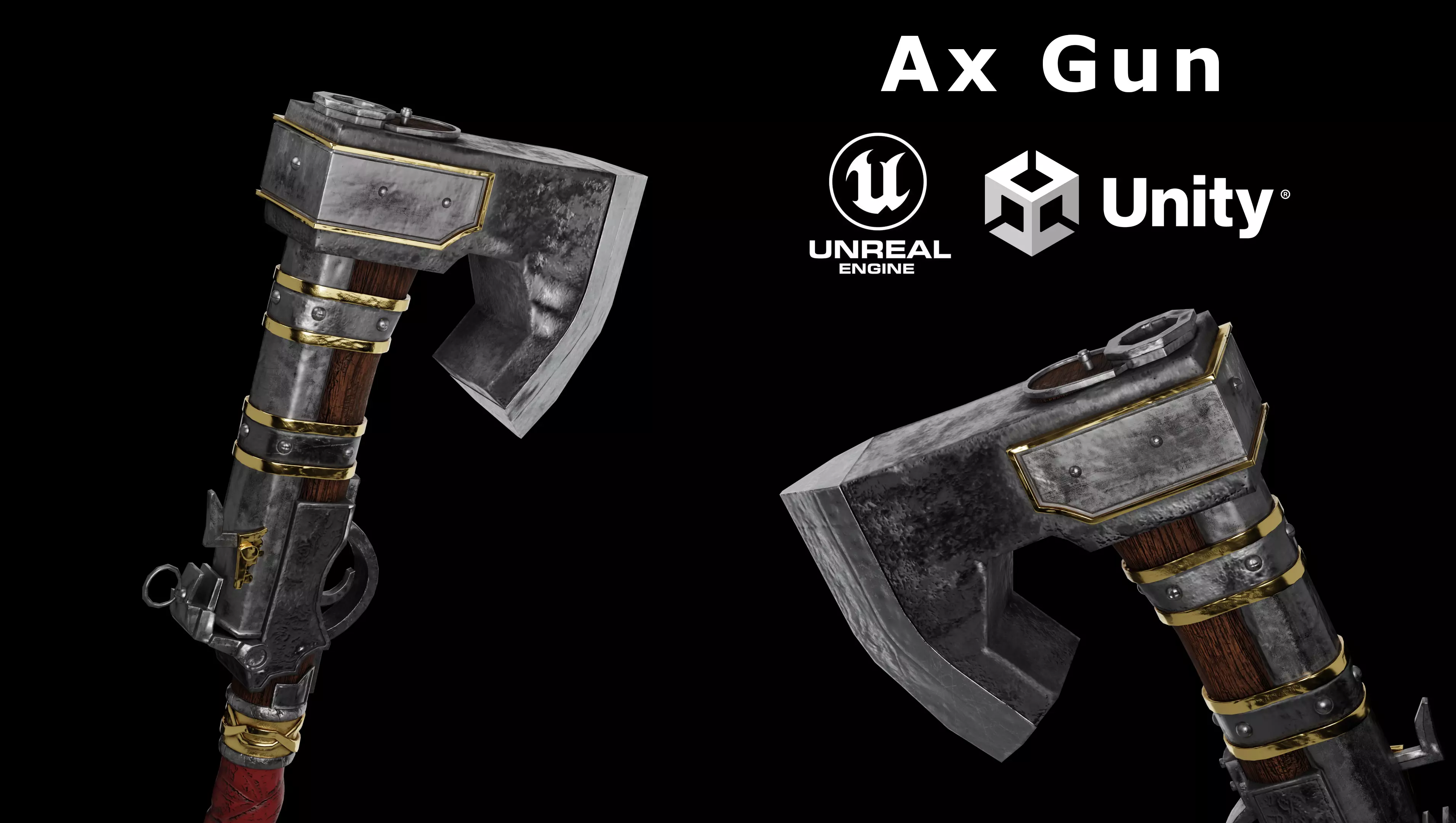 This axe-pistol is the perfect choice for those who value quality, style, and functionality in weapon models for gaming projects. It's ready to come to life in your game universe and add a unique charm and individuality to your project.