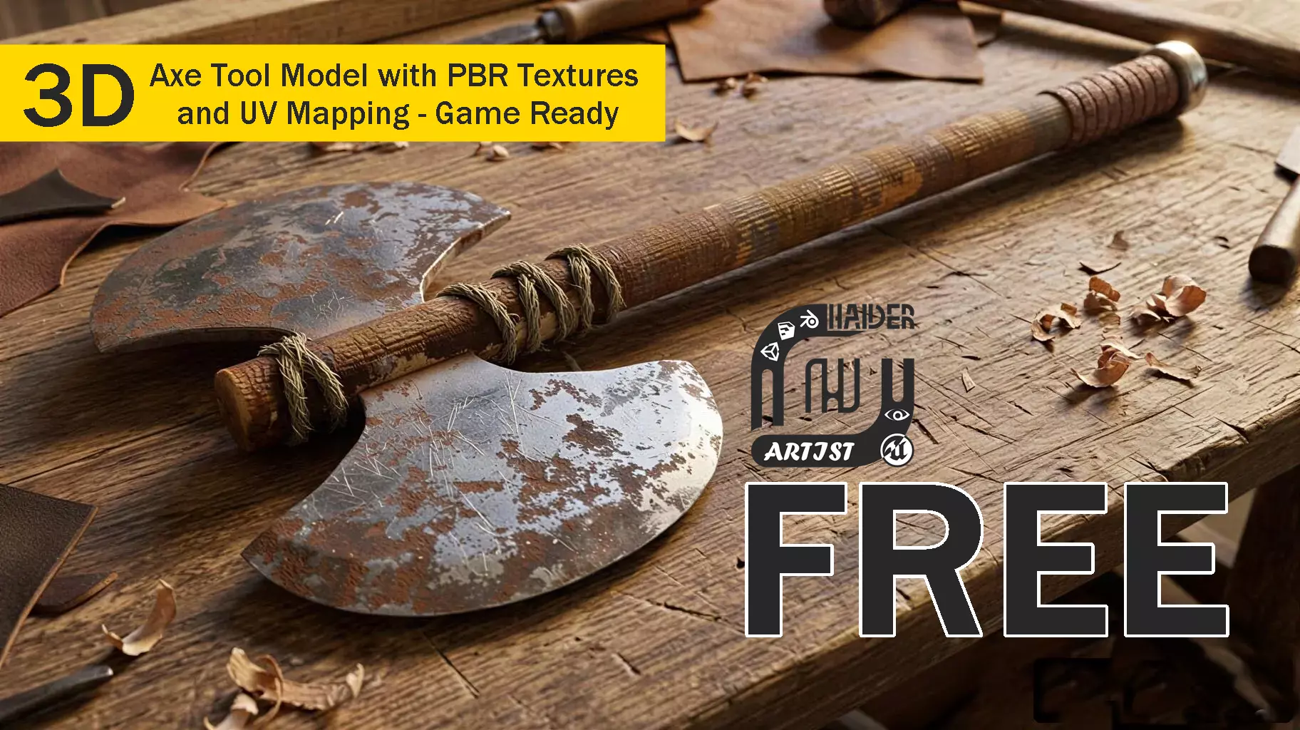 3D Axe Tool Model with PBR Textures and UV Mapping - Game Ready