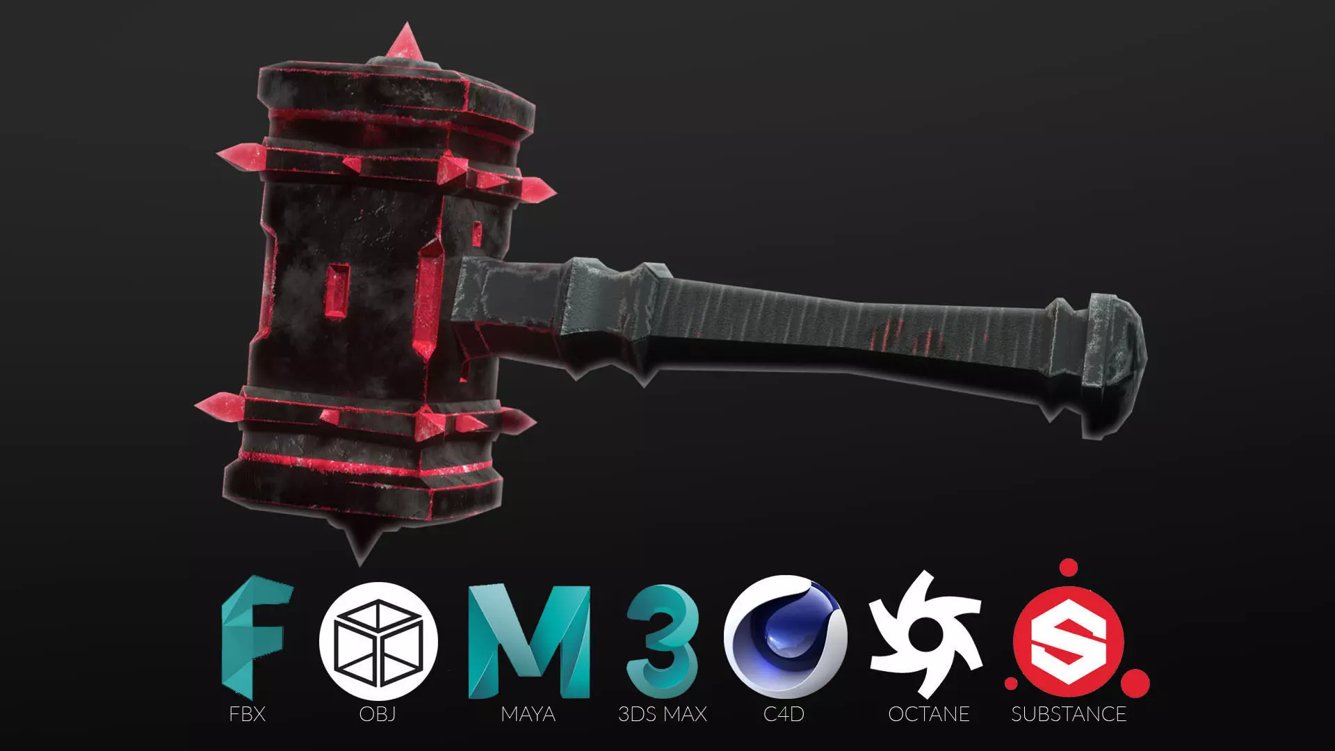 • Extremely realisitc model of a red highlighted fantasy hammer