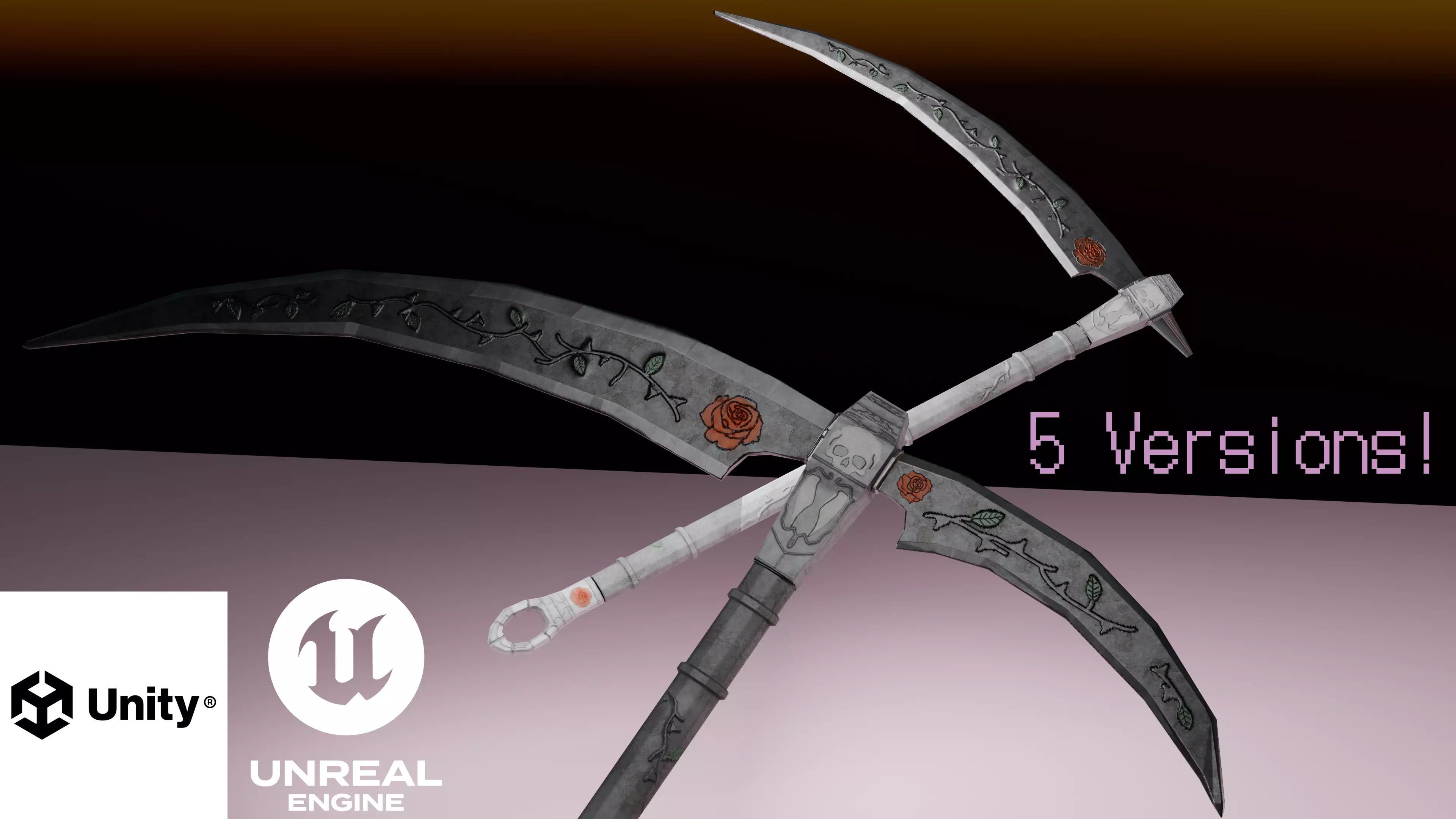 Game-ready, fully optimized, and tested in UE5.5, Unity 6, and Godot 4. All scythes share textures, materials, and UVs
