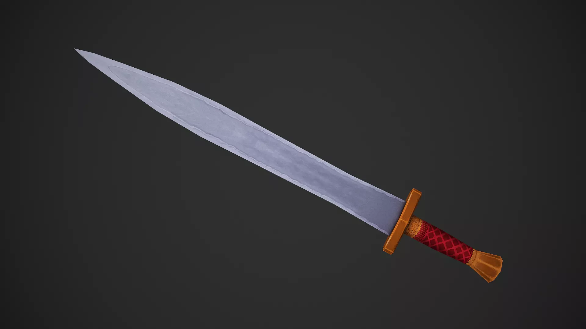 Simple low poly sword with relatively swift silhouette and a diffuse only, hand painted texture that's a mix between stylized and realistic styles.