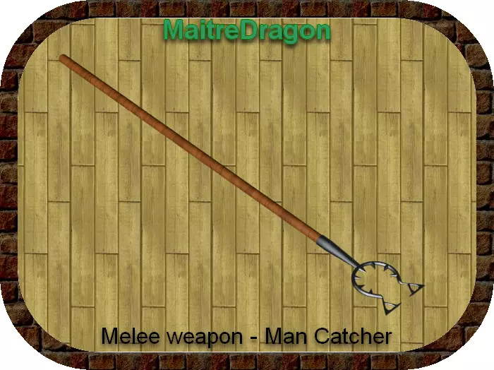 Series of medieval weapons created for Warhammer Role-playing games:The Man catcher or rogue trap is a polearm, equipped with several spikes inside an open circle, all mounted on a long stick. This weapon was used to capture criminals without killing them, by blocking their necks in the middle of the spikes.