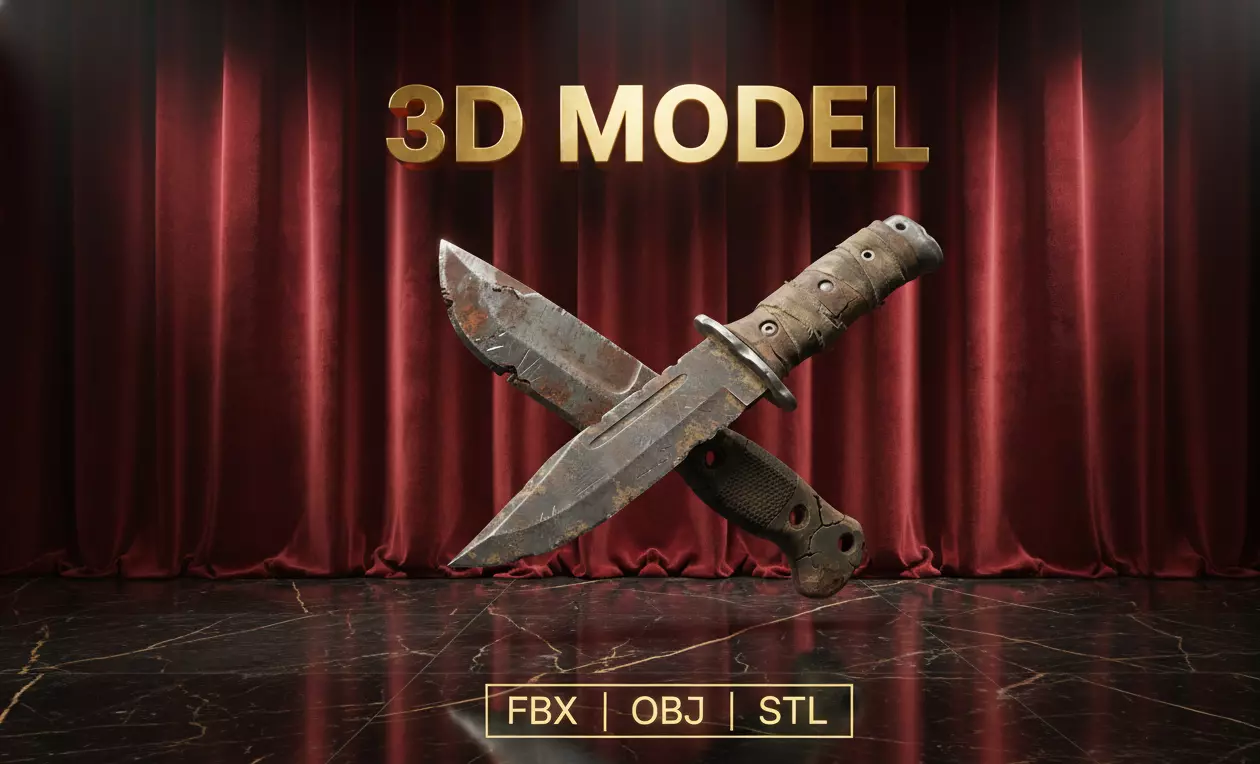 This Post-Apocalyptic Survival Knife is a detailed, game-ready melee weapon designed for dystopian, zombie, and survival-themed environments. The blade features heavy rust, chipped edges, worn metal texture, and realistic surface aging from long-term exposure.