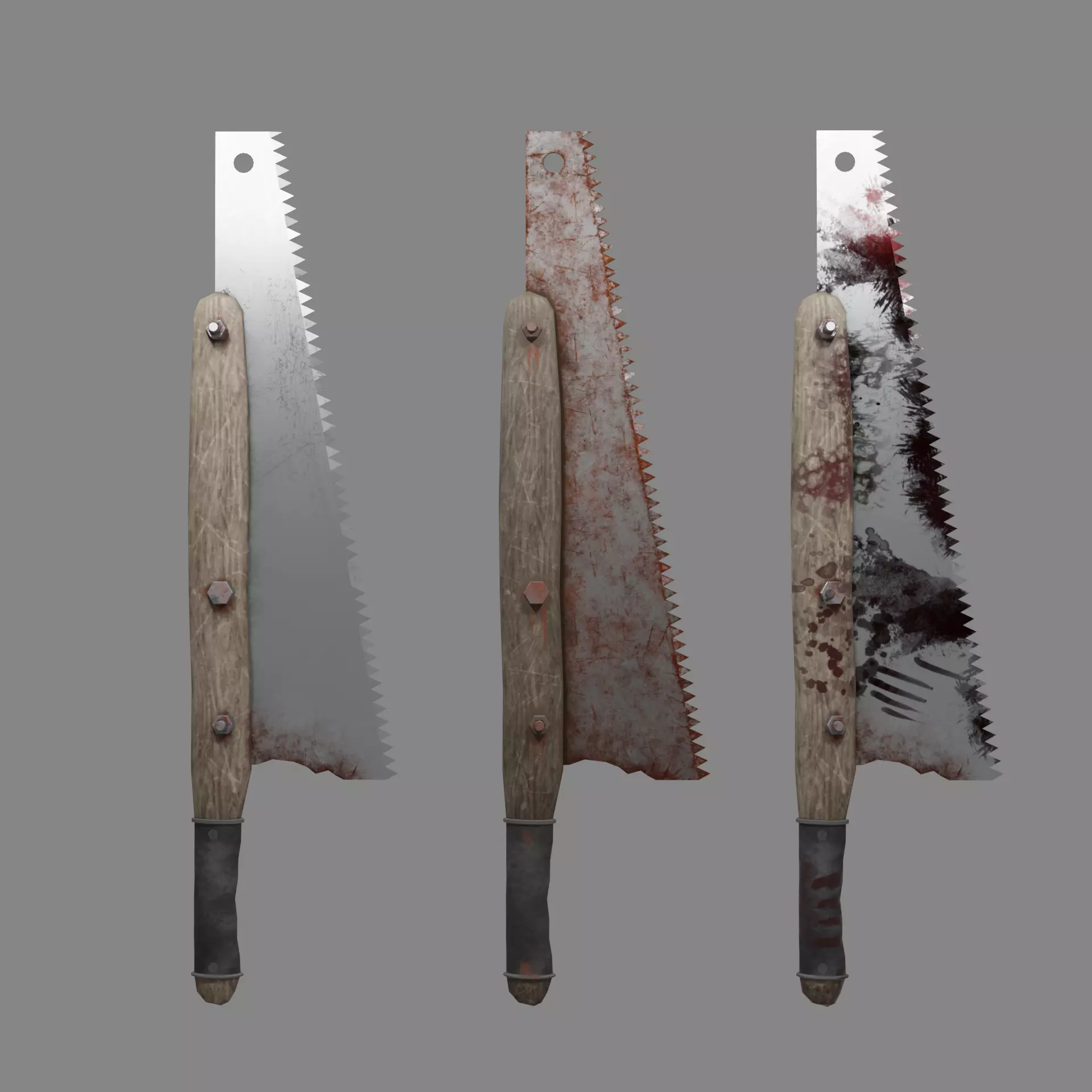 A saw blade boldet on to a stick.comes with 3 texture types: normal, old and bloody.around 4.4k polygons and is game ready.textures are PBR and comes with: BaseColor, Normal, Metalic, Roughness and Height.