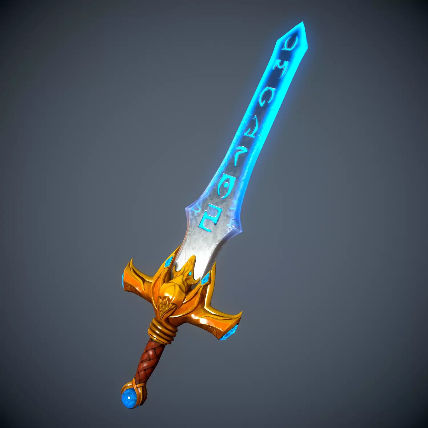 Dragon hilt stylized fantasy sword, has PBR textures ( albedo, normal,metallic, roughness, ambient occlusion, emissive), polycount about 2.8k.
