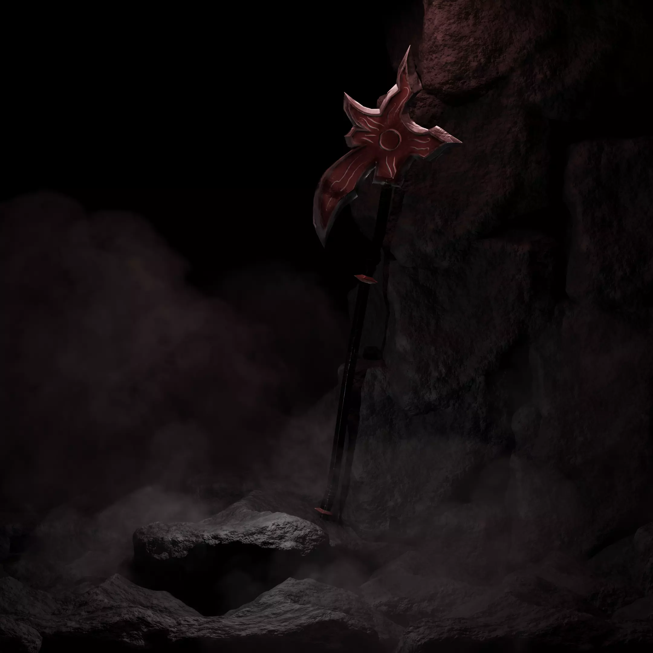 Stylized fantasy weapon with unique long-handle design