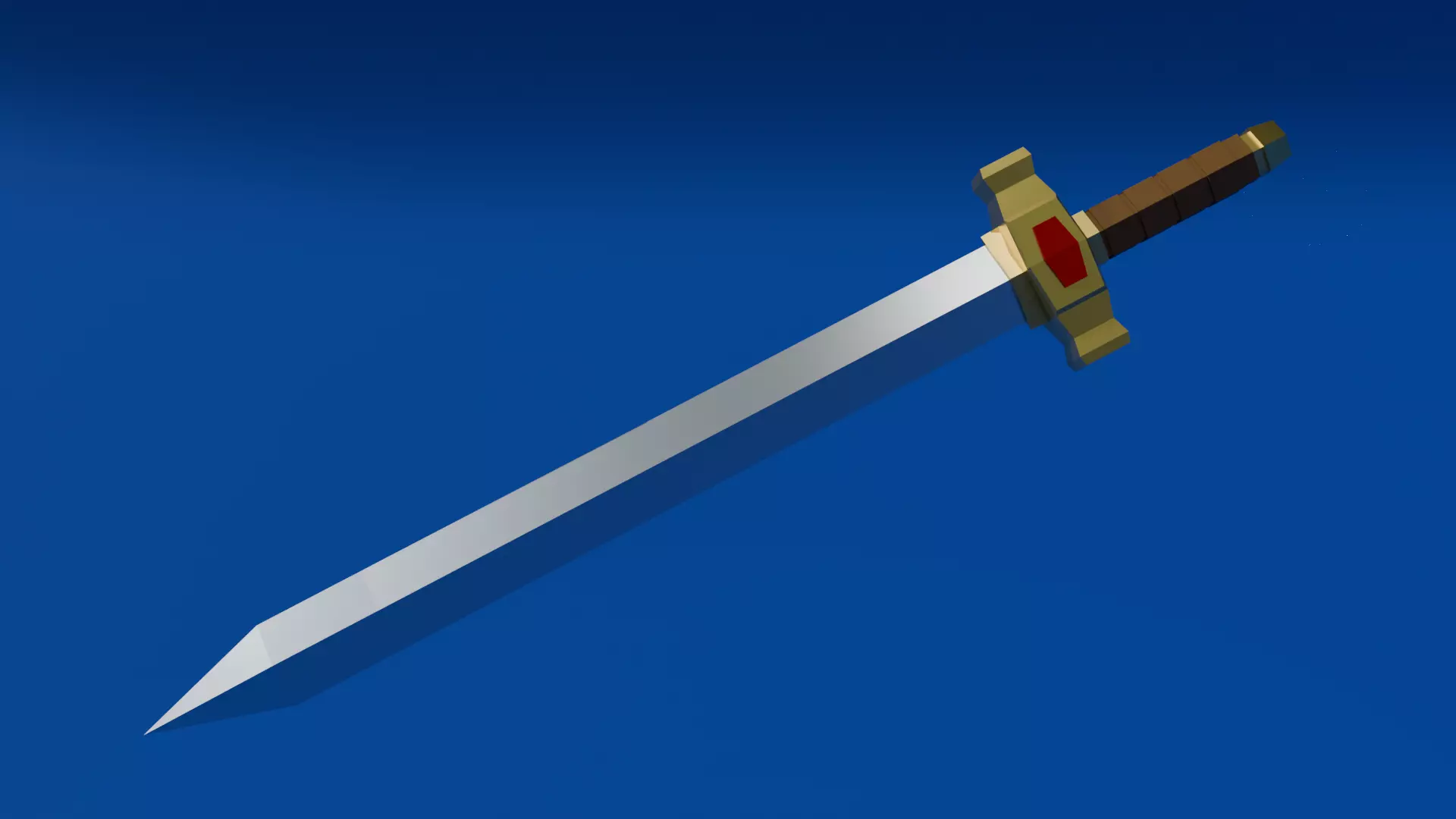 This is a 3D model of a stylized low-poly sword. The model is suitable for use in games or other projects with a soggy style. It also has PBR textures in 1K extension.